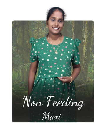 This non-feeding maxi is my favourite at home. The cotton is breathable and light, perfect for Madurai’s climate. I’ve washed it many times — no fading, no shrinking.