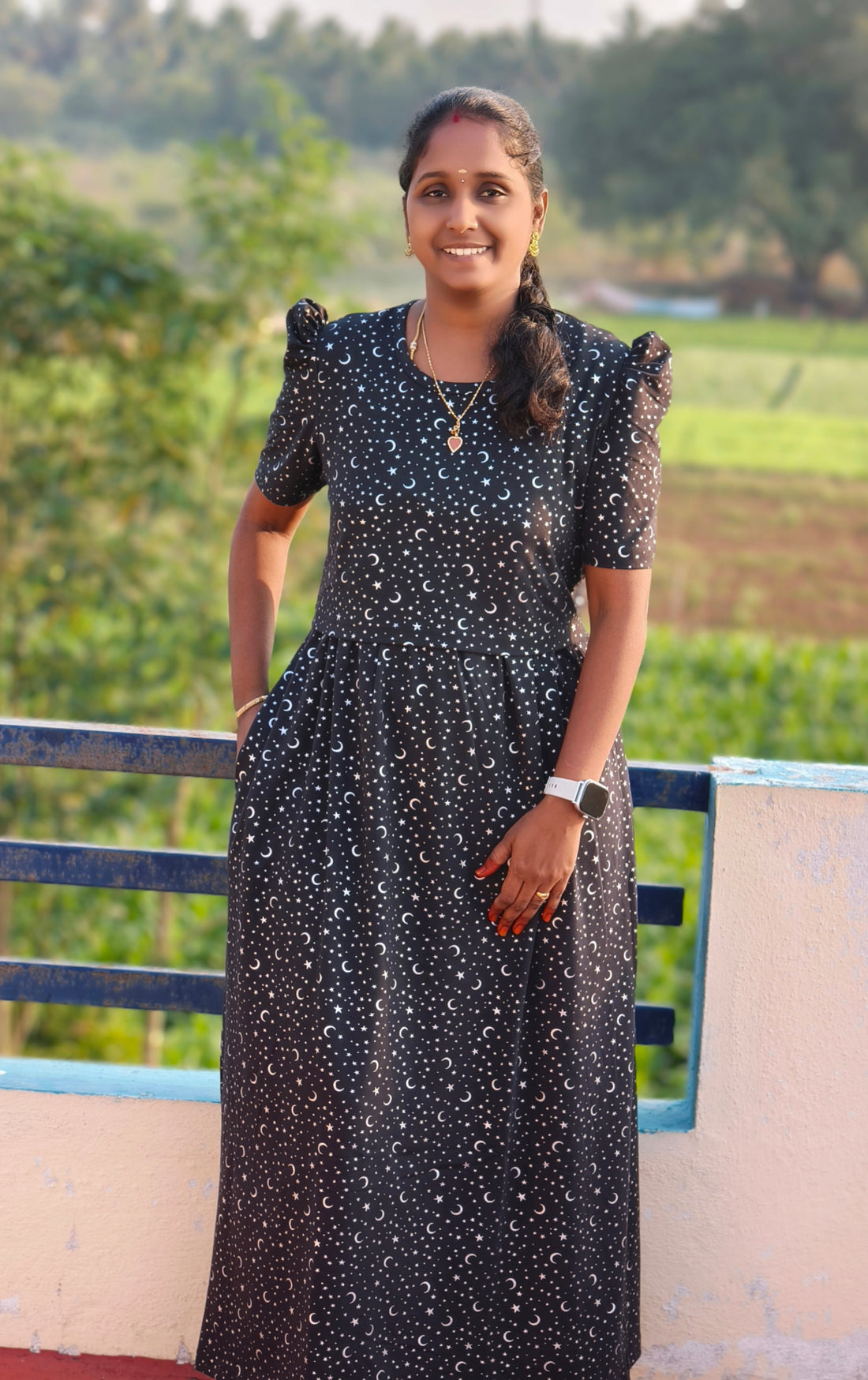 I wore the maxi with my daughter’s matching frock for a family function in Coimbatore. Everyone complimented us! Stitching, fit, and fabric were all excellent. Worth the money.🤗