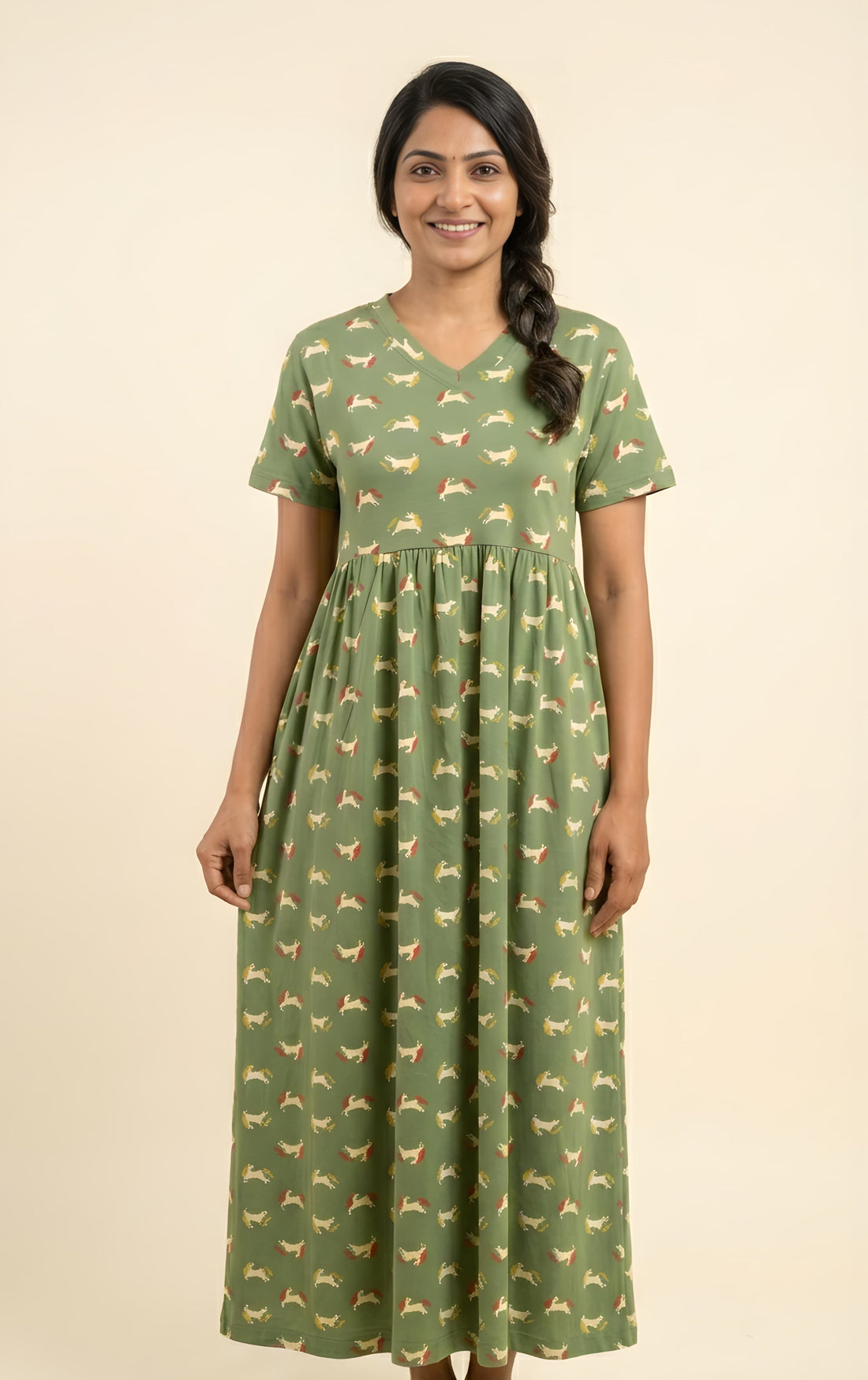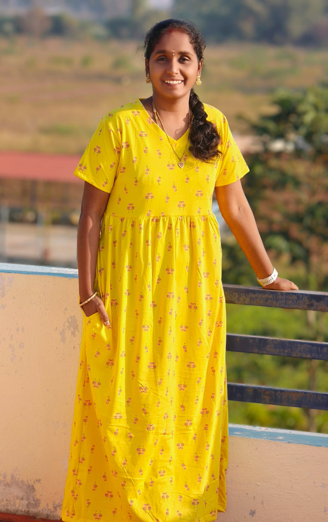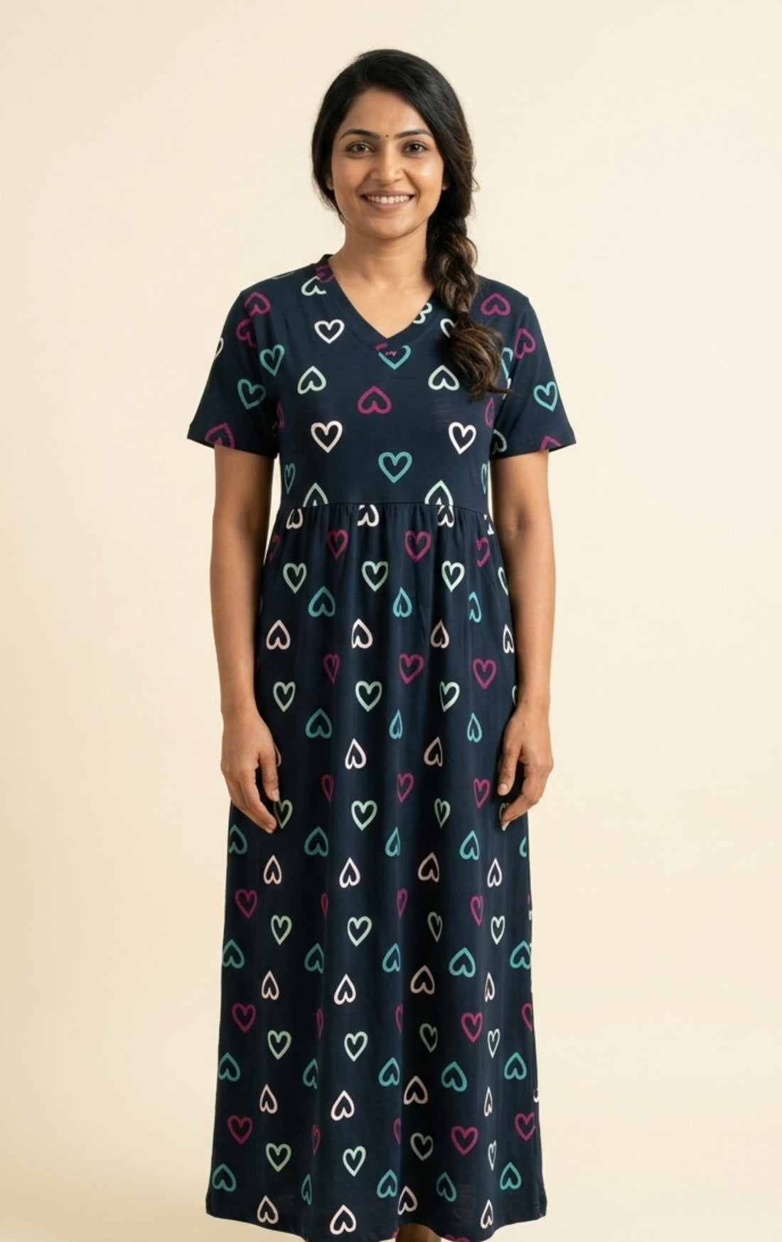 This non-feeding maxi is my favourite at home. The cotton is breathable and light, perfect for Madurai’s climate. I’ve washed it many times — no fading, no shrinking.