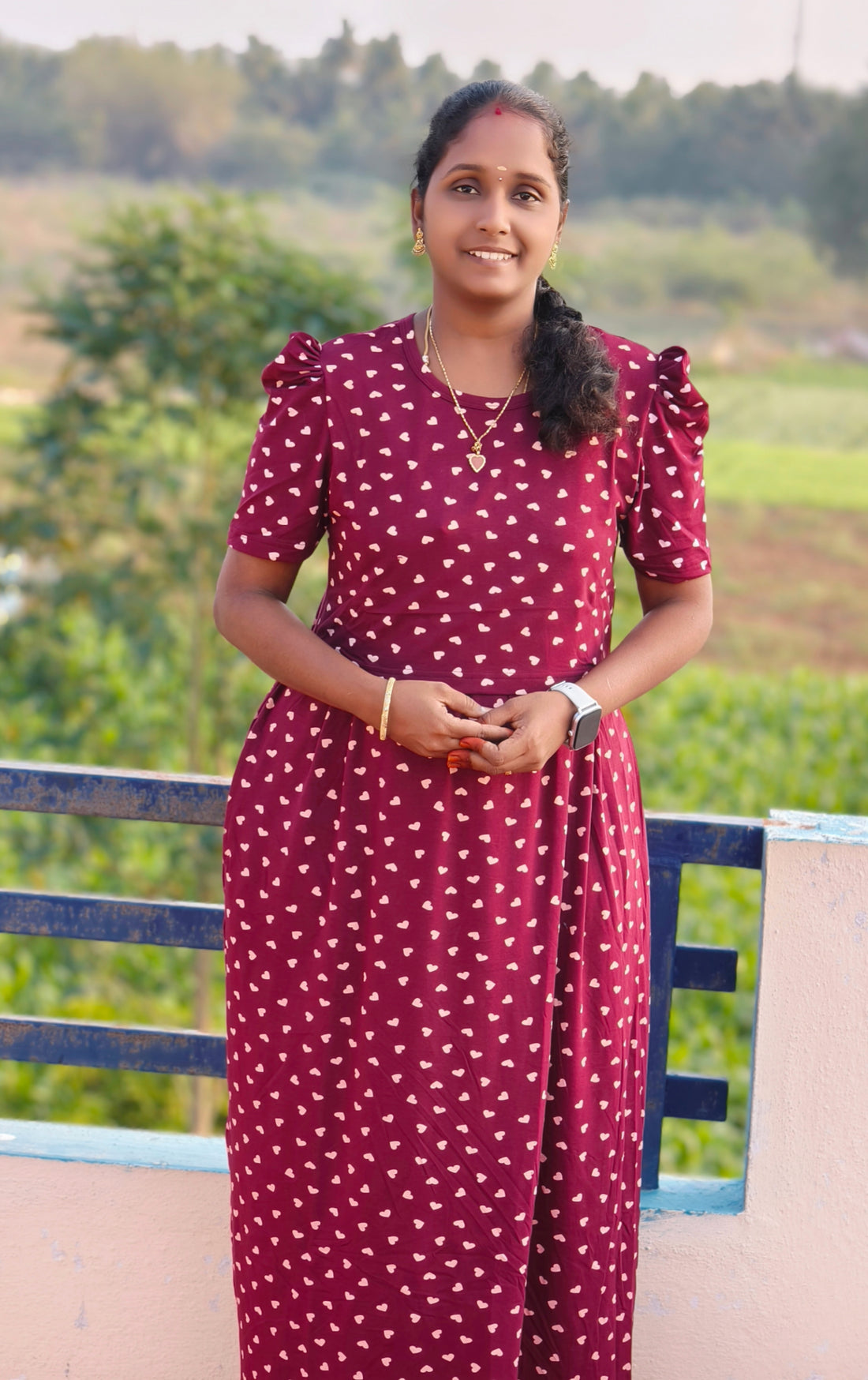 Maroon heart print | Zipless feeding maxi 😍