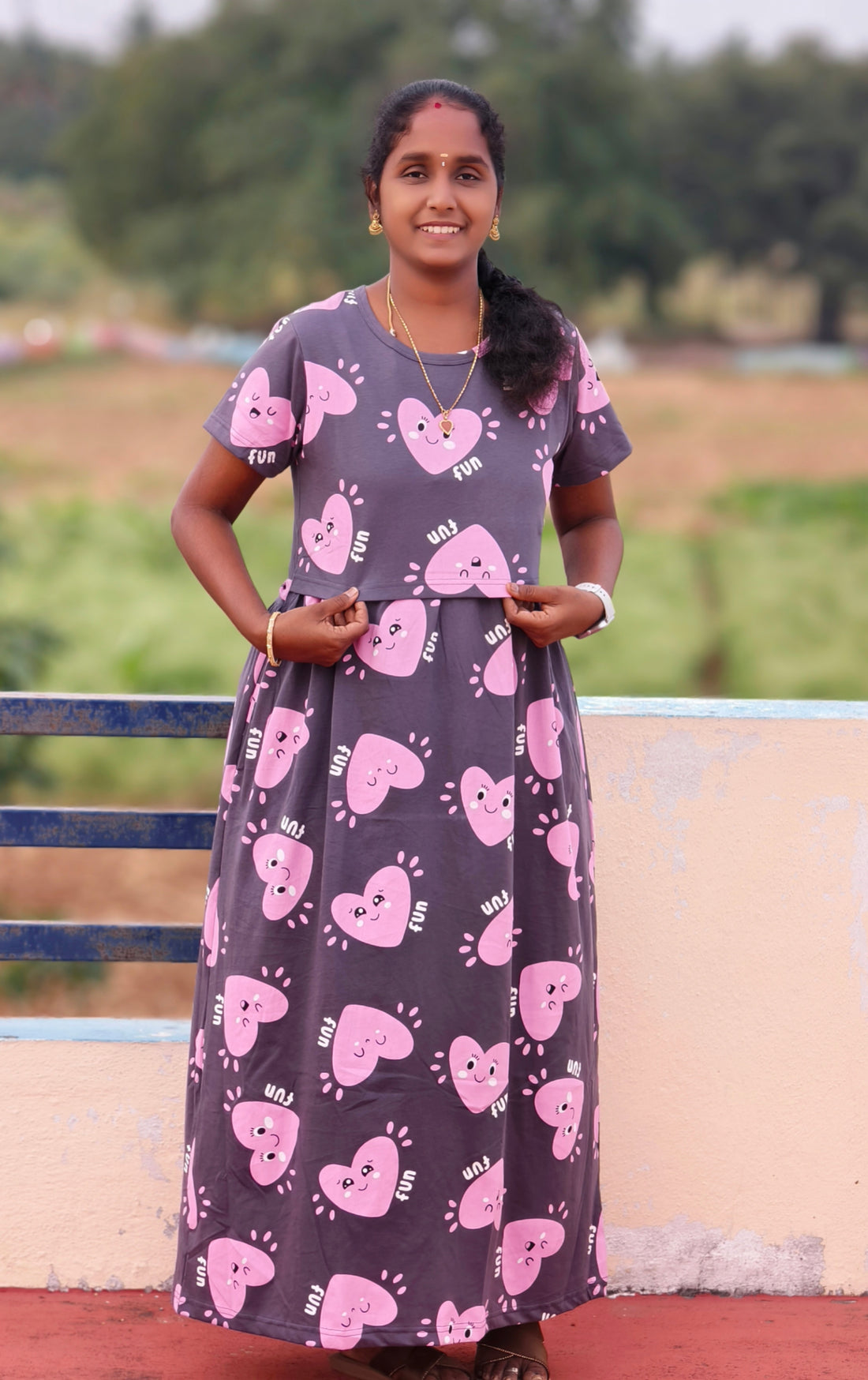Grey with heart print normal' Sleeve Zipless feeding maxi