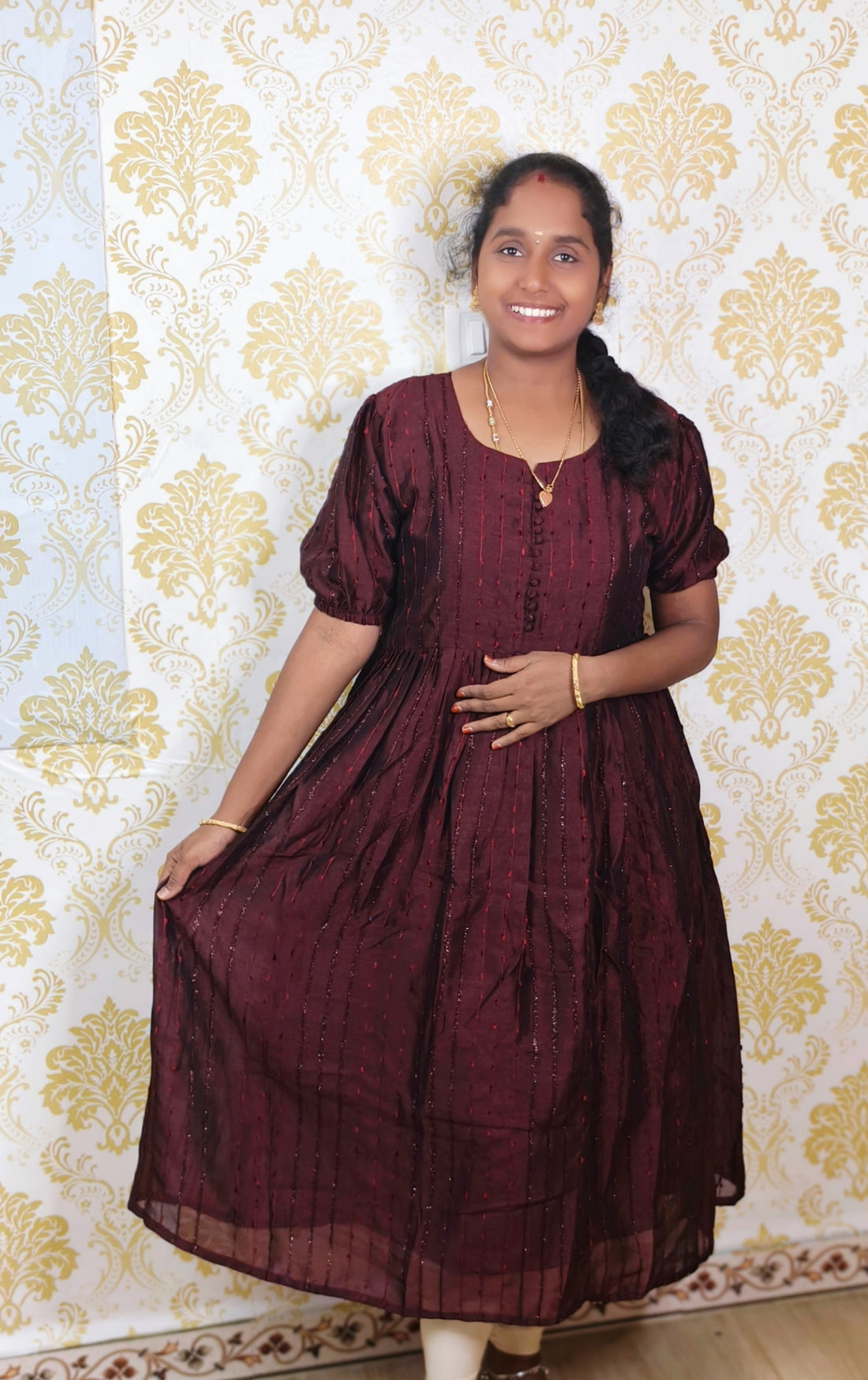 BURGUNDY GLITTER  V -NECK NON FEEDING MAXI